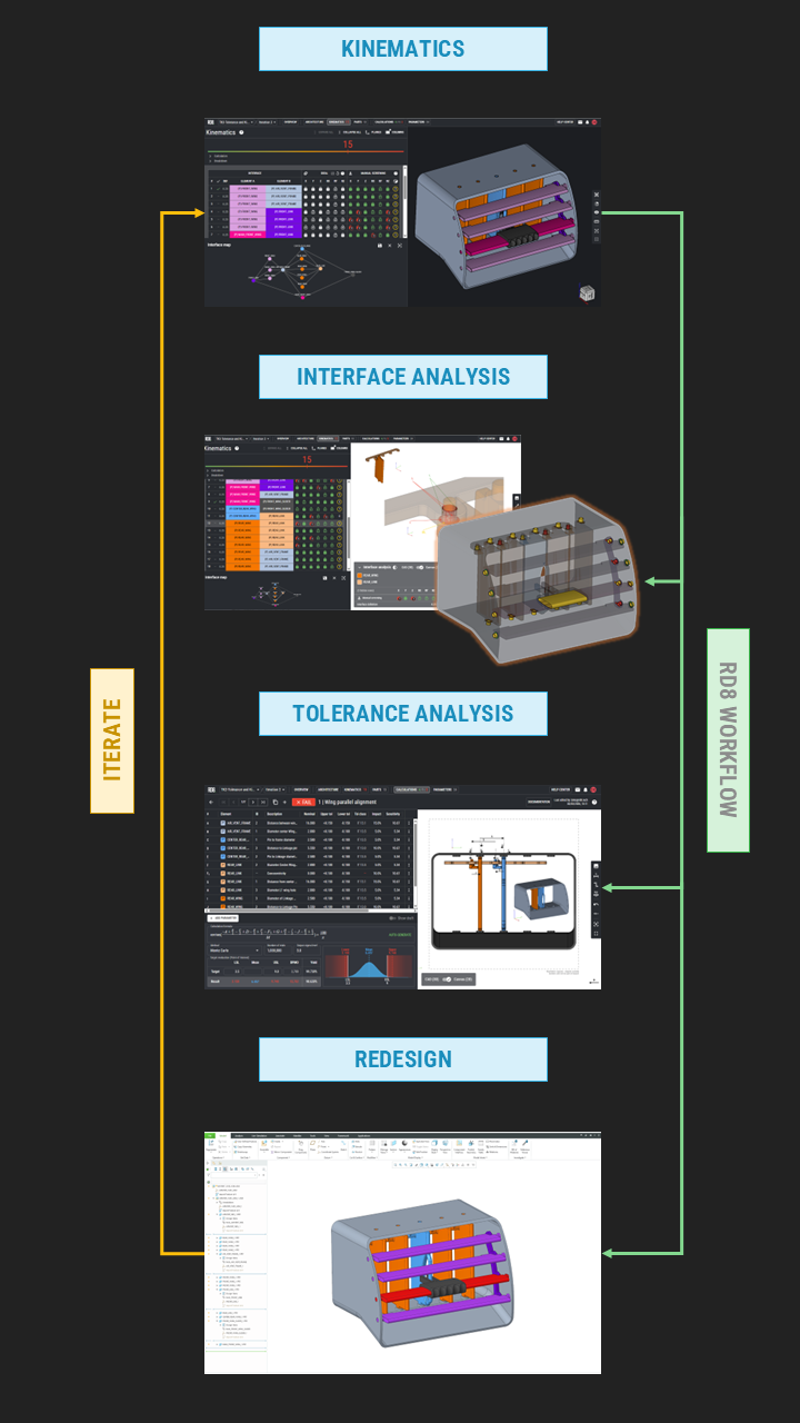 Equally important is understanding tolerance stacks from the first concept stage. Instead of relying on late-stage reviews, RD8 maps functional stacks early and across multiple components and sub-systems, so variation risks are exposed before they become costly. This proactive approach creates designs that are forgiving, manufacturable, and reliable, reducing redesign loops and accelerating time-to-market.