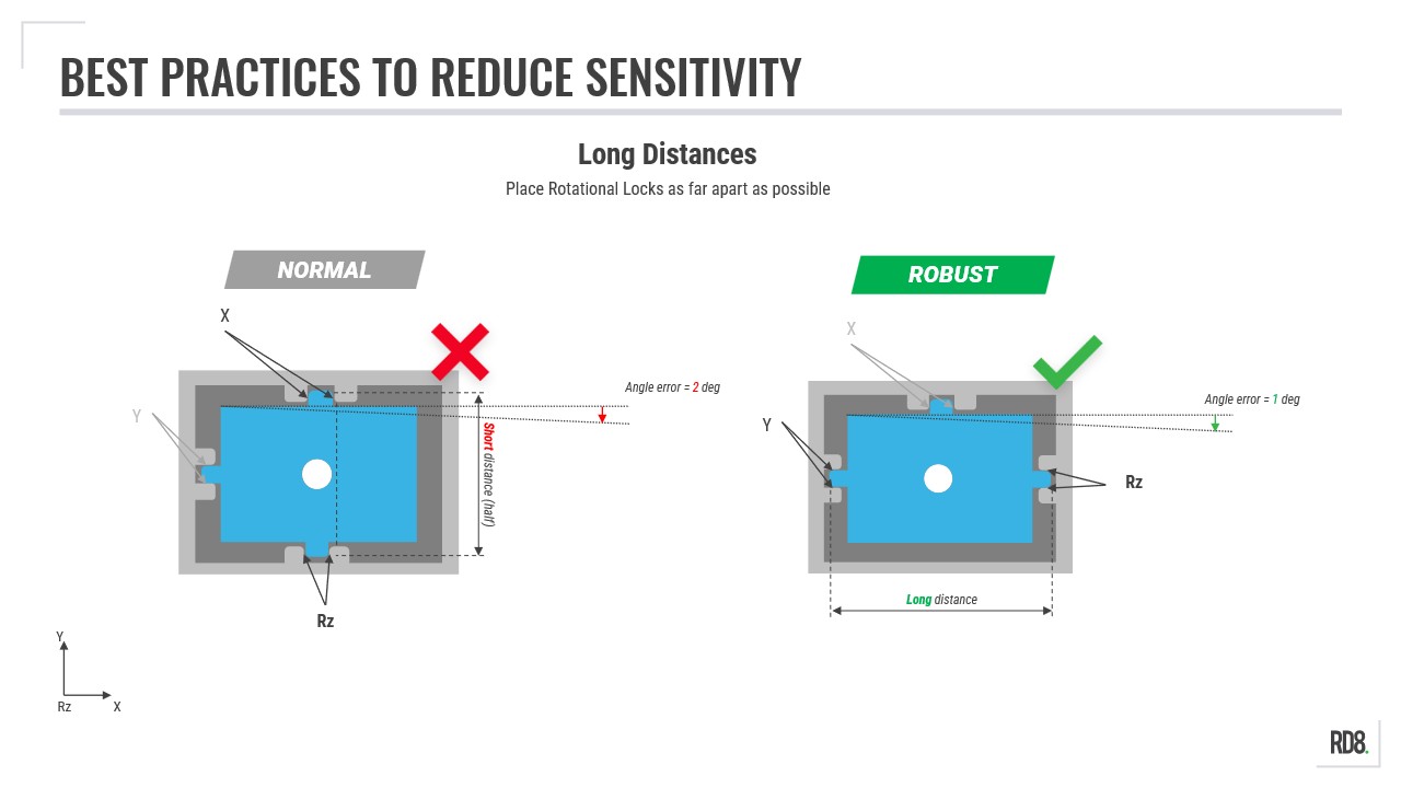 When designing interfaces between parts - size matters. Smaller dimensions is easier to keep in control (smaller tolerances). Keep that in mind if you are in the quest for low variation.