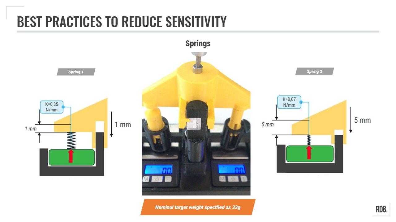 Note: a spring with lower stiffness require more pretention to obtain the same force